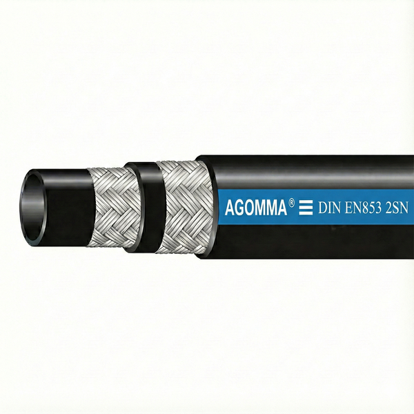 Ống thủy lực AGOMMA 2SN (tiêu chuẩn SAE 100R2AT / EN 853 2SN) được sử dụng để dẫn truyền dầu thủy lực gốc dầu mỏ và dầu thủy lực gốc nước. Ống có cấu tạo gồm lớp cao su tổng hợp chịu dầu chất lượng cao, 2 lớp bố thép bện cường lực, cùng lớp vỏ cao su tổng hợp chống dầu và chịu thời tiết, màu đen, bề mặt trơn hoặc bọc vải.
