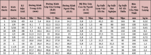 Bảng Thông Số Kỹ Thuật Chi Tiết Của Ống Thuỷ Lực SP FLEX 2SN
